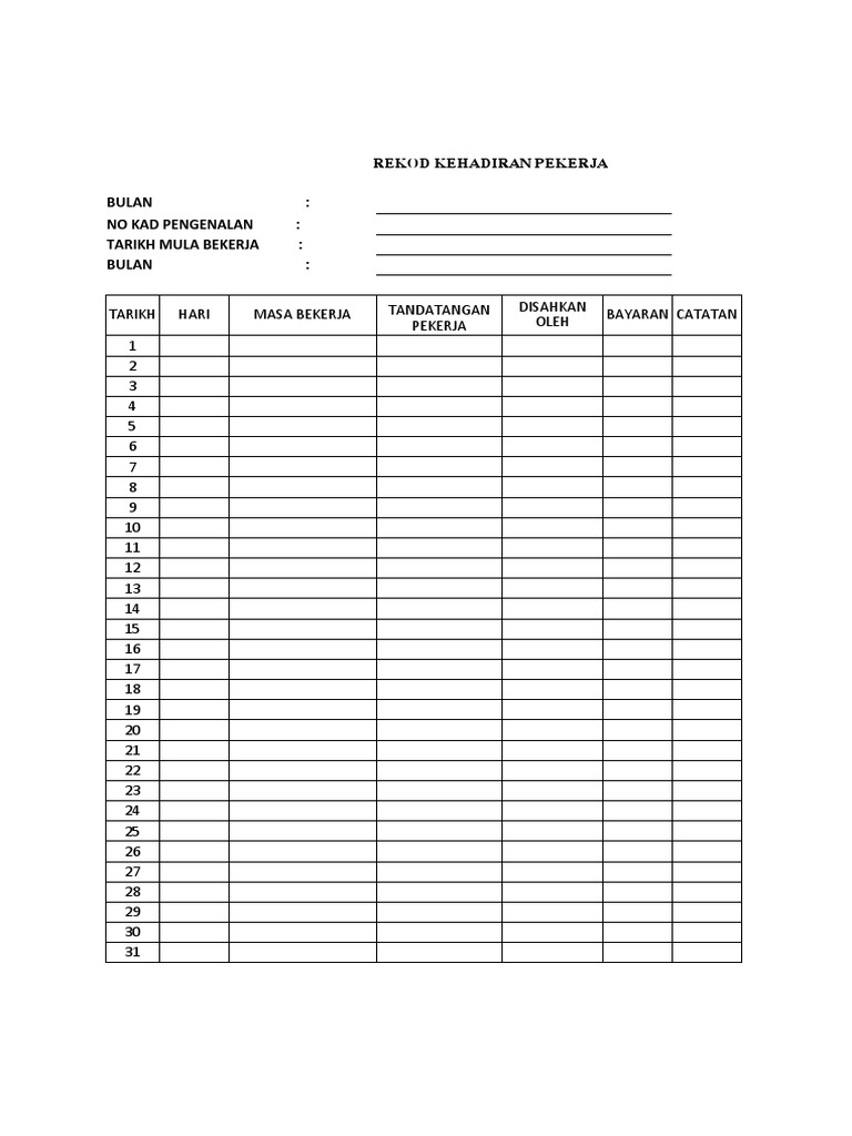 Templat Borang Rekod Kehadiran Pekerja Word Doc Percuma Muat Turun Pikbest